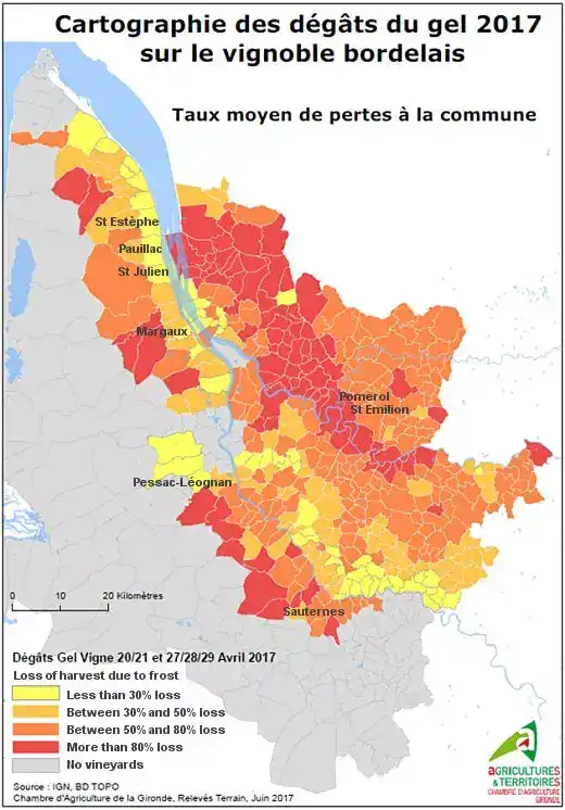 Embora as geadas de primavera estejam normalmente mais associadas à Borgonha e ao Vale do Loire, as geadas de primavera hoje representam uma das maiores ameaças climáticas também para os vinhedos de Bordeaux. Nos últimos dez anos, dois episódios atingiram severamente os vinhedos da região (2017 e 2021), após um longo intervalo desde os eventos de 2021.