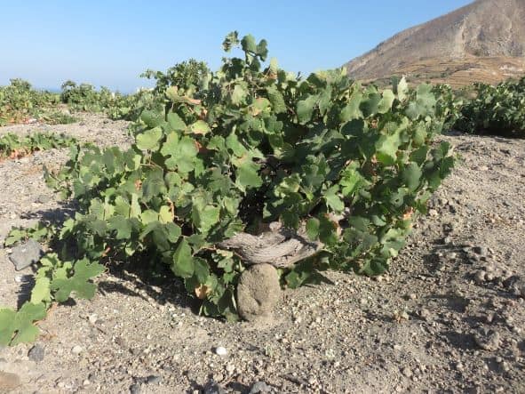 Em Santorini, ela responde por cerca de 65% da área de vinhedos, com uma importante proporção de vinhas em pé-franco, com idades que podem chegar a 250 anos. Nesta ilha vulcânica, varrida pelo vento, as raízes das videiras podem atingir até 18 metros de profundidade no solo preto e rico em cinzas. Ao contrário de métodos tradicionais de condução (como Guyot, por exemplo) as videiras são mantidas próximas ao solo, em um formato similar a uma cesta (chamada Kouloura). Esta técnica minimiza os danos causados pelo vento durante a floração, bem como queimaduras do sol.