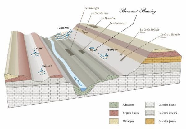 A Domaine Bernard Baudry é um exemplo de vinícola que consegue explorar seu terroir de forma muito equilibrada. Busca diferentes expressões para seus vinhos, de acordo com as características do solo. Para tal, beneficia-se de ter à sua disposição parcelas de vinhedos em solos distintos, traduzindo esta diversidade em diferentes cuvées.