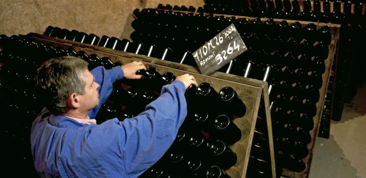 Mas o processo não acaba por aí. Neste período, as garrafas ficam armazenadas em uma posição que permita que as leveduras mortas se acumulem próximo do gargalo da garrafa. Para facilitar que elas se acomodem de forma consistente, existe um processo chamado remuage, que consiste na rotação gradual das garrafas em torno de seu próprio eixo.