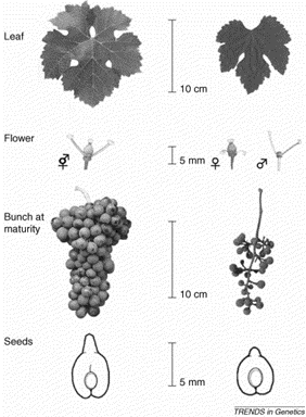 O surgimento do gênero videira é datado de cerca de 60 milhões de anos atrás, com raríssimas descobertas de fósseis espalhados pelo globo sem vínculo genético com qualquer espécie atual. Já quando se olha para a arqueobotânica de milhares de anos, é hipotetizado que na grande glaciação do Pleistoceno, duas subespécies de Sylvestris começaram a se diferenciar e foi nessa época que os humanos entraram em maior contato com elas. Descobertas apontam para fósseis de Vitis Sylvestris de 800.000 a 400.000 anos de idade, uma concentração de fósseis de semente mais antiga encontrada até hoje e são do Cáucaso.