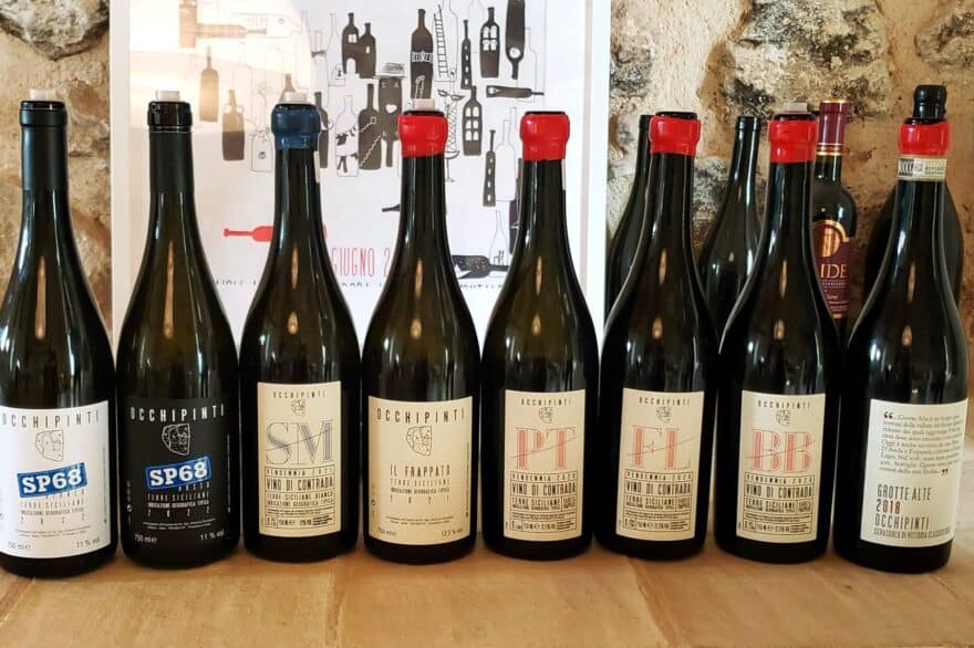 Ariana Occhipinti é um dos grandes nomes do vinho de baixa intervenção na Itália. Atualmente com 32 hectares de vinhedos e produção na faixa de 160 mil garrafas ao ano, divide seus vinhos em três linhas. São dois vinhos de entrada (um branco e um tinto), que correspondem a cerca de dois terços da produção total. Chamados de SP68 (nome da rodovia ao lado de sua principal propriedade) são vinhos de incrível vivacidade. Juntos, correspondem a cerca de dois terços da produção total.