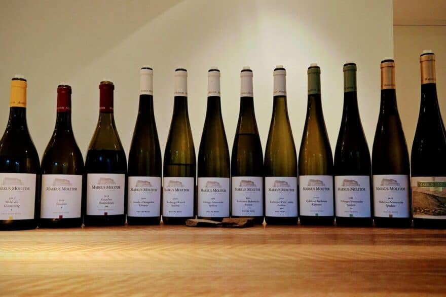 Markus Molitor é um caso de enorme sucesso não apenas na região do Mosel, mas também no mundo dos vinhos finos. Em 1984, contava com apenas três hectares e hoje, pouco mais de 40 anos depois, vinifica cerca de 100 cuvées diferentes todos os anos, a partir de mais de 120 hectares. Não sendo parte da VDP, divide seus vinhos em três grupos, com base no sistema alemão de Prädikat (que avalia o grau de açúcar das uvas na colheita ou o peso do mosto). Os vinhos mais secos recebem cápsula branca, que é verde para os no estilo Feinherb e dourada para os doces e licorosos. Além disso, adota também um sistema de qualidade interno, que varia de uma a três estrelas.