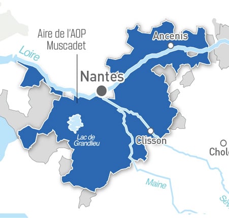 Criada em 1937, esta denominação de origem se estende por 81 vilarejos, a maioria dos quais na margem esquerda do Loire. Ela cobre uma área que vai desde o Oceano Atlântico até Anjou e do rio Loire até a região de Vendée. Seus vinhos são 100% Melon de Bourgogne e se dividem em três estilos: Muscadet, Muscadet sur lie e Muscadet primeur. O primeiro estilo concentra vinhos mais leves, destinados quase que exclusivamente ao mercado local. O rendimento nos vinhedos pode chegar a 65 hectolitros por hectare.