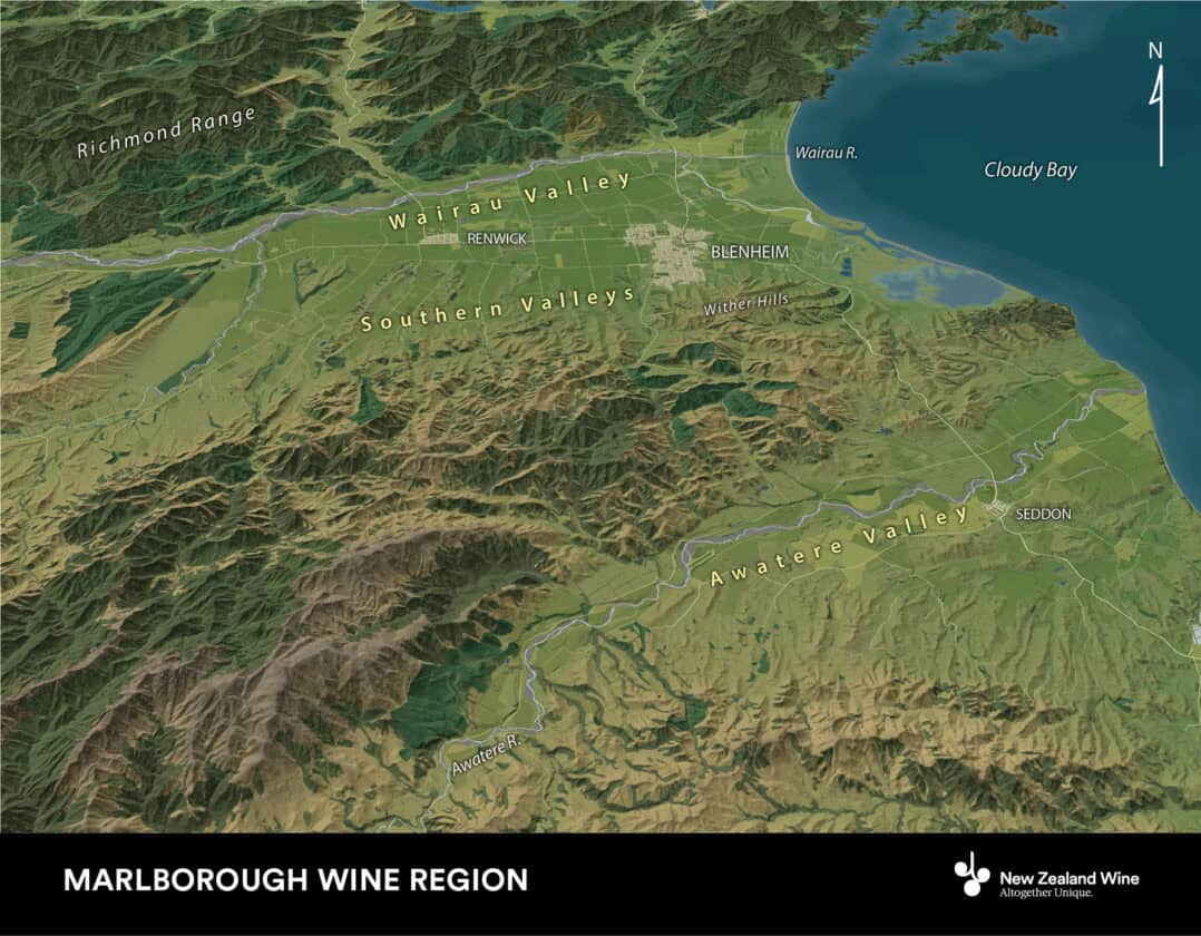 Ao lado de Central Otago, é um das regiões mais secas da Nova Zelândia, com índices pluviométricos na faixa de 655 milímetros de chuva por ano. A influência da água, porém, não se deve somente ao mar e à chuva. Dois rios marcam a região: a norte o Wairau e, mais ao sul, o Awatere. Por conta disso, Marlborough conta com numerosos vales e alta proporção de solos aluviais, já que o curso dos dois rios mudou constantemente no passado. Por conta destes fatores, é uma região dos diversos micro terroirs, que podem ser agrupados em três sub-regiões distintas.