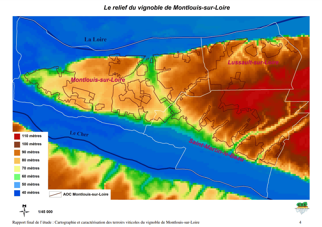 Em Montlouis-sur-Loire, porém, há maior concentração de solos arenosos e aluviais, chamados localmente de Les Sables. Por conta da orientação de suas colinas, há também menor exposição solar do que em Vouvray. Isso ajuda a explicar as diferentes características de seus vinhos.