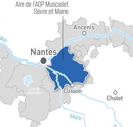 Esta denominação de origem fica inteiramente dentro da área geográfica da Muscadet AOC, mais especificamente a leste e sudeste da cidade de Nantes. No total, são 23 vilarejos distintos, divididos entre os départments de Maine-et-Loire e Loire Atlantique. Seu nome deriva de dois rios da região, o Sèvre Nantais e o Maine, ambos afluentes do Loire.