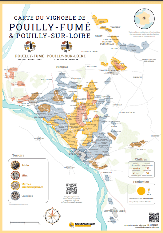 Fontes: Loire Master Level Study Manual, Wine Scholar Guild; The Wine Doctor; Cahier des Charges de L’appellation d’origine Pouilly-Fumé; Loire Valley Wine Economic Report, Vins de Loire