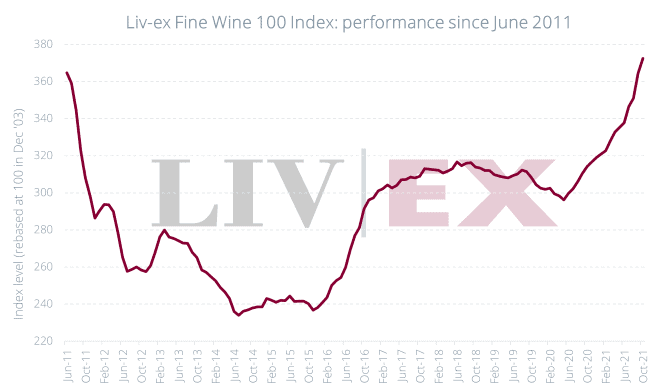 Ao menos é o que mostram os dados da Liv-ex, uma plataforma de comércio que agrega quase 500 grandes comerciantes de vinhos ao redor do mundo, com maior participação no Reino Unido, onde está sediada. O índice Liv-ex Fine Wine 100, que acompanha o desempenho dos 100 vinhos finos mais negociados no mercado secundário, subiu 2,2% em outubro, para fechar em 372,44. Este é seu maior patamar de todos os tempos.