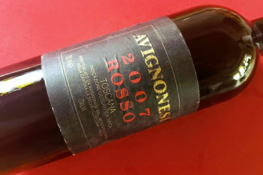 Neste intervalo de tempo, a Avignonesi mudou muito. Sob nova administração desde 2009, partiu para uma maior valorização de variedades locais e agricultura biodinâmica. Mas em 2007 pensava diferente. Seu Rosso não era 100% Sangiovese, como atualmente, mas um corte de 40% da principal variedade da Toscana, com 30% da francesa Cabernet Sauvignon e 30% de Merlot.