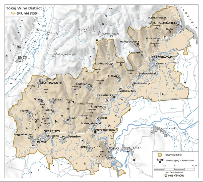 É uma região onde a vinicultura conta com mais de 800 anos de história e que dá origem a um dos grandes tesouros do vinho mundial: os Tokaji Aszú. Estes vinhos, elaborados a partir de uvas botritizadas, por séculos servem de inspiração e fonte de prazer para os verdadeiros amantes do vinho. Porém, o distrito de Tokaj é muito mais do somente vinhos doces, ganhando espaço também com vinhos de outros estilos.