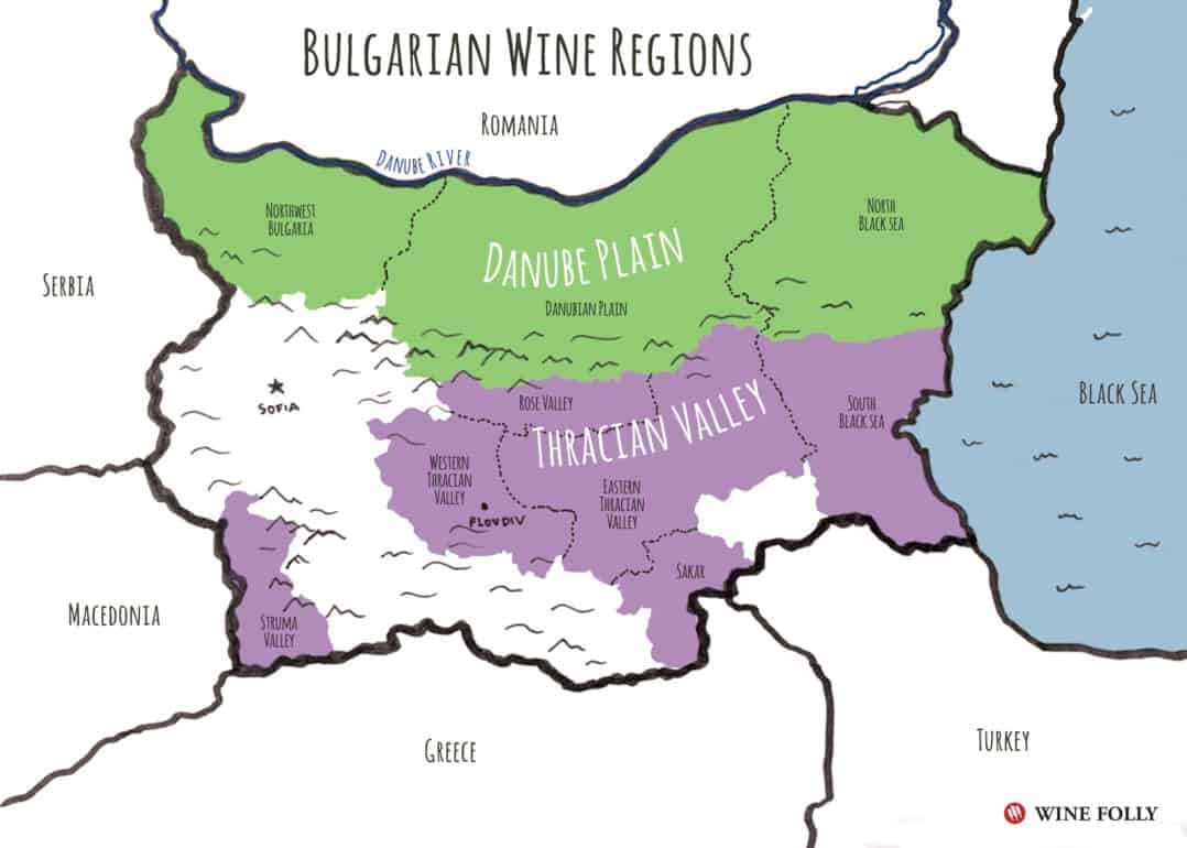 Após a democratização do país, reorganização da atividade vitivinícola e entrada na União Europeia, as áreas vinícolas da Bulgária foram segmentadas em quatro regiões. Atualmente, porém, o país é dividido em apenas duas grandes Indicações Geográficas: a Planície do Danúbio e os Vales da Trácia. Esta divisão, todavia, é criticada de forma contundente, pois não corresponde a regiões homogêneas.