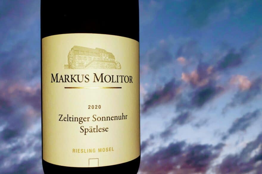 O Zeltinger Sonnenuhr Riesling Spätlese faz parte do primeiro grupo, compostos por vinhos mais secos. Ele foi elaborado a partir de vinhas velhas (mais de cem anos) de pé-franco, plantadas em solos de ardósia azul e cultivadas de acordo com os princípios da agricultura sustentável com baixos rendimentos (10 a 20 hectolitros por hectare). Após colheita manual em novembro, as uvas foram fermentadas a baixas temperaturas, com uso exclusivo de leveduras indígenas, em um mix de tanques de inox e grandes barris de carvalho (1.000, 2.000 e 3.000 litros). O vinho foi mantido nestes últimos recipientes com suas lias, até seu engarrafamento.
